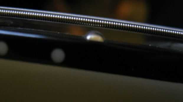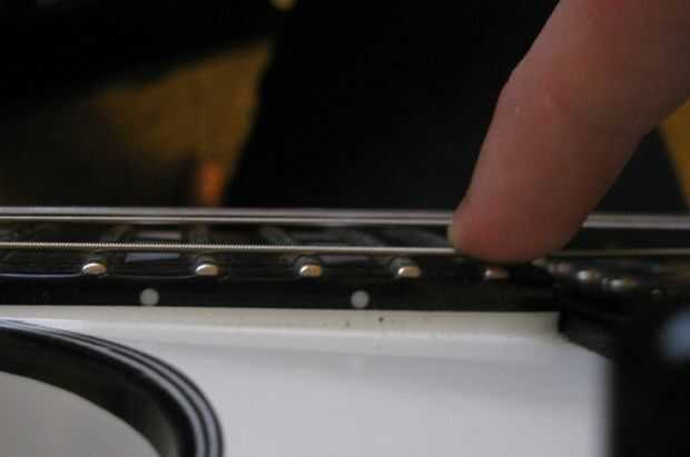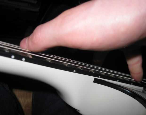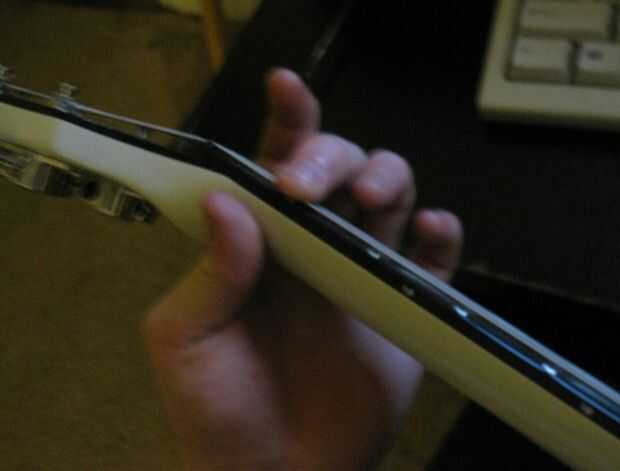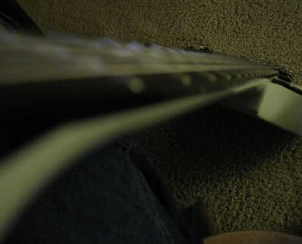 Una forma de medir la cantidad de alivio es presionado los trastes primeros y últimos y para medir la altura del traste 7. Una feria de buena cantidad de altura debe ser de alrededor.1 mm. a.4 mm