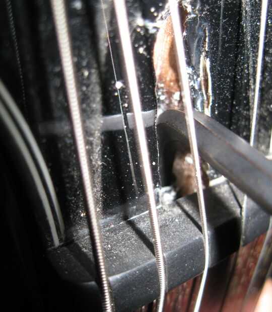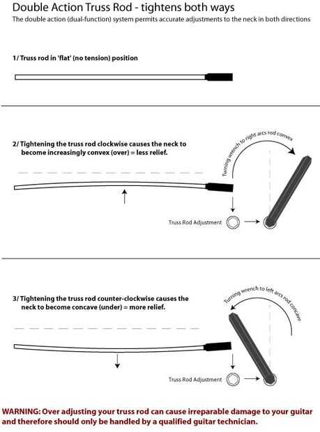 Gire lentamente el truss. Un poco de vuelta irá que mucho confías en mí. A lo largo de la manera de comprobar la curvatura del cuello y socorro y mantener ajuste hasta que se de su agrado. nunca ajuste más entonces puede ajustar.