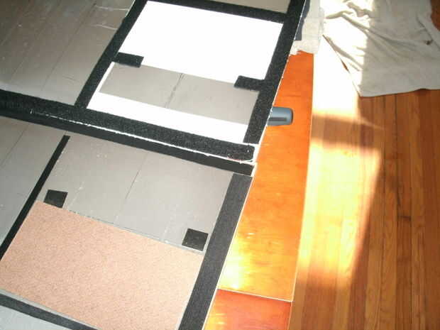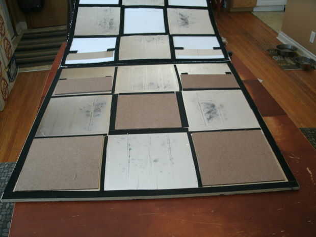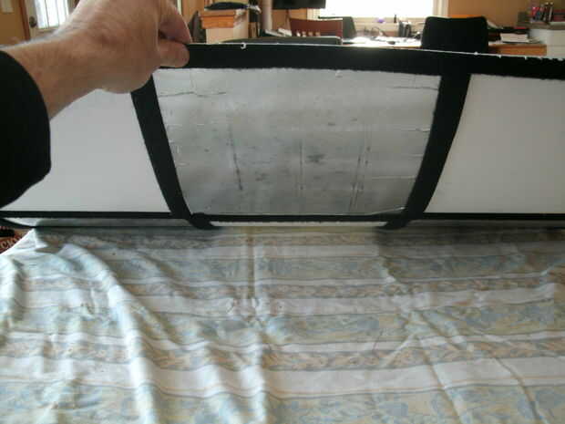 La noche antes de que había notado que las dos esquinas superiores tenían cables parecen Fije la almohadilla superior a la Junta Directiva del fondo. De lo contrario parece ser que el colchón está sujeto por cinta de Velcro. Coloqué todo sobre la mesa y poco a poco trabajado mi manera a través de Velcro tirando una lona entre cada nuevo pedazo fue puesto en libertad. Finalmente tuve la lona en la parte de la flecha hacia arriba. En ese momento levantó la almohadilla superior y doblado encima tratando de no romper los cables en la parte delantera. Como se puede ver en las fotos no hay mucho a estas cosas. La primera cosa que noté fue las arrugas, burbujas y mancha negra en la cinta de aluminio.