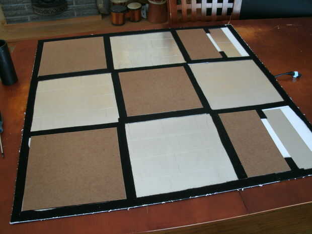 Para volver a montar coloca el teclado boca abajo y con cuidado trasladó todos los-tableros de fibra uno por uno, conservando su orientación. El aspecto de cortes como se han hecho a mano con un oxidado vio así probablemente sería más fácil mantenerlos en su lugar designado así que usted puede estar seguro que todavía caben. Una vez que fue hecho puse la lona sobre él y colocar la base en boca abajo. Tiró el paño nuevo un poco para poder enganchar la parte superior y luego una vez que todo estuvo orientada sacó el paño y el pad era detrás junto otra vez.