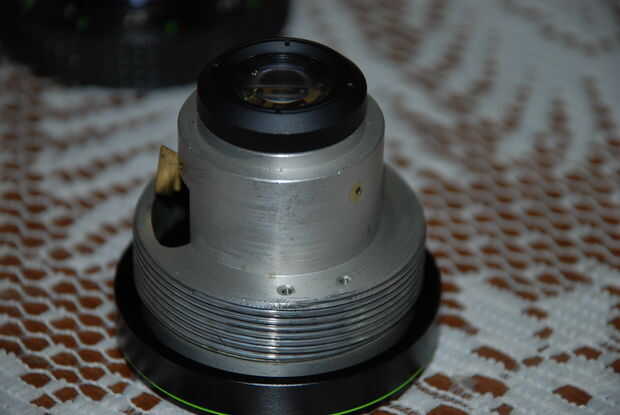 Puede desatornillar los cuatro tornillos negro pequeño (dos en la parte superior izquierda) y dos abajo a la derecha para dejar el objetivo reducir el bloque interno como se muestra en la segunda foto.