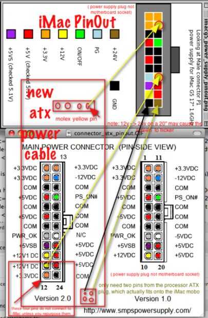 Utilice a la guía de la foto a continuación para su fuente de alimentación de alambre del arnés de fuente de poder iMac. opcional :: cable de extensión de uso un ATX-ATX para no dañar los cables de la PSU:: **