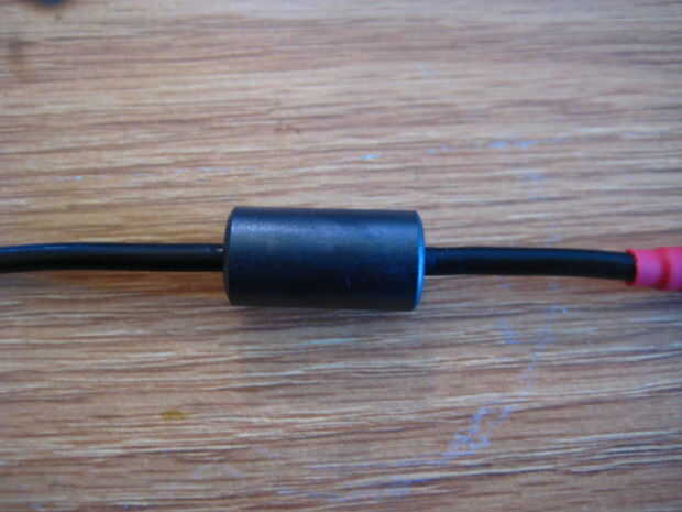 Usuario de Instructables "winston_smith" dijo que esto se llama un toroide y dijo que se utiliza para evitar subidas. "getbusy21" publicada que es un grano de ferrita, usado para detener las altas frecuencias. Él también proporcionó el enlace a continuación, explicando que probablemente era un requisito de la FCC que no cambia el rendimiento.