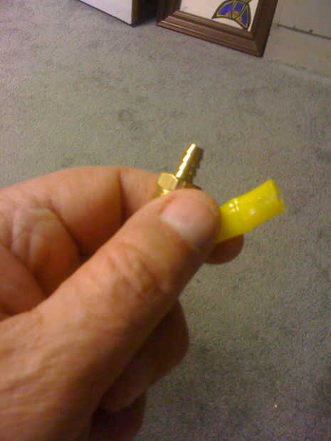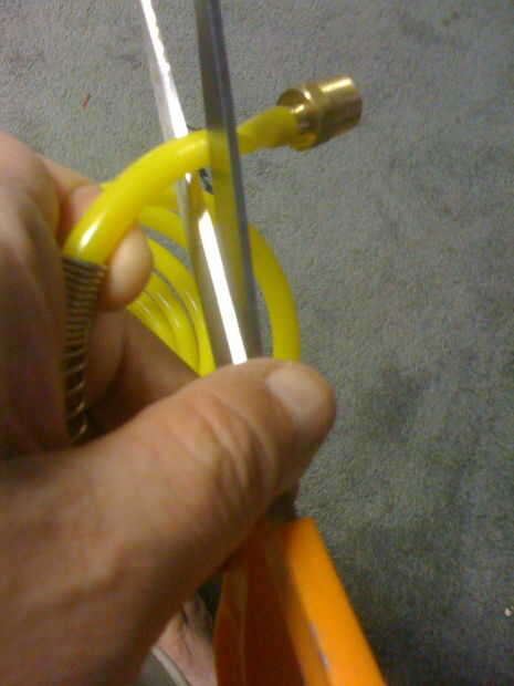 Corte la manguera por encima de la presión y quitado el pedazo restante de la boquilla. Quizás tenga que utilizar un cuchillo x-acto o una herramienta de corte para cortar a través de la pieza de manguera; es bastante difícil.