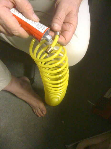 Manteniendo el resorte en su lugar es lo que mantiene esta manguera de conseguir prensado. Una manera de lograr que permanezca es utilizar un poco de zapato-Goo. Gracias a mi esposa Carolyn por este Consejo!