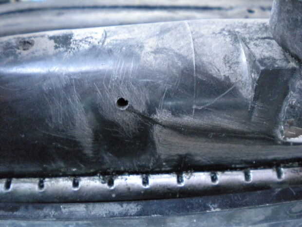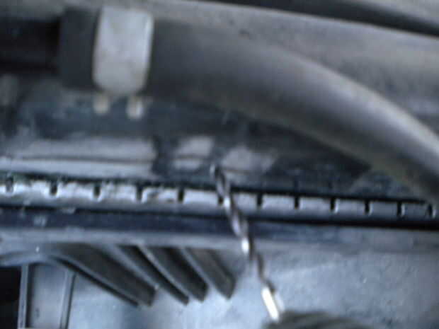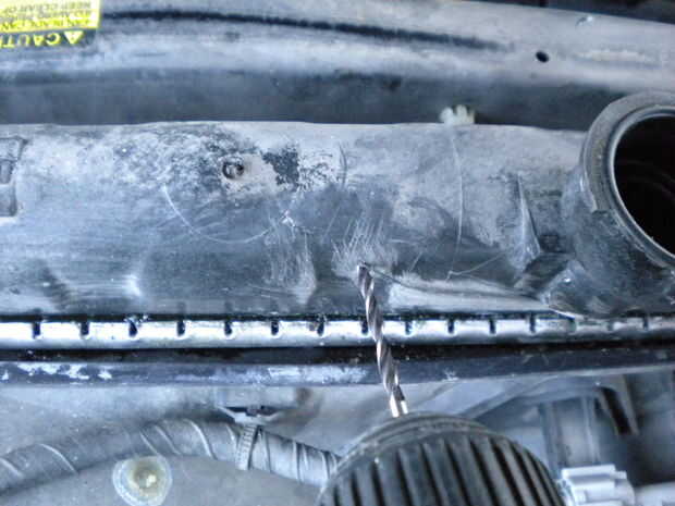 Después de que los agujeros se perforan Asegúrese de que la arena el área alrededor de los agujeros otra vez para que la fibra de vidrio se adhiere a la superficie.