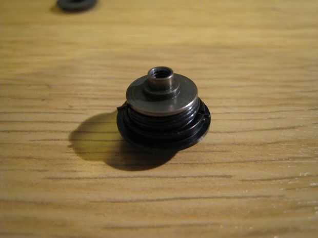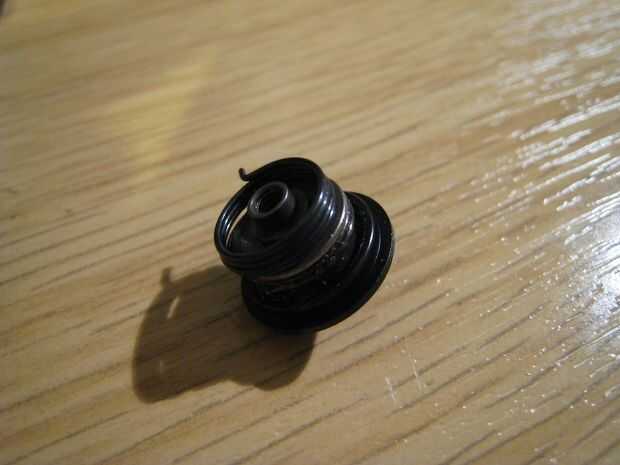 La tapa inferior se une a la forma que celebra la primavera. La tapa es libre montaje. Hay una muesca en la tapa inferior y también en la tapa superior que los fines de la primavera por lo que puede transferir el par entre los dos. Tomando un vistazo a mi primavera, pude ver que había una curva de ángulo recto en un extremo del resorte para crear una pierna que encaja en la muesca de la parte inferior. No había ninguna curva similar en el otro extremo del resorte para la primera clase. Parece que hubo una vez una curva en la primavera, pero no fue ahora.