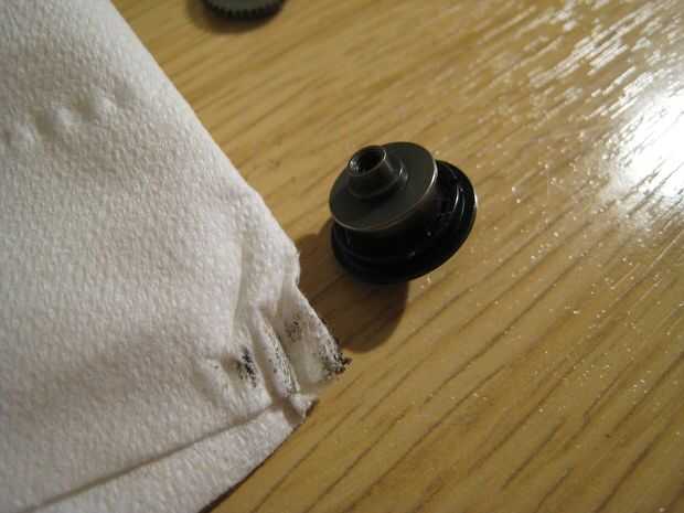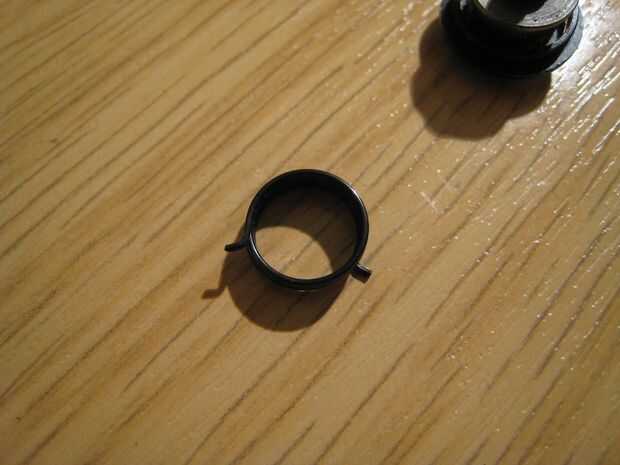 La tapa se mantiene en su lugar cuando la unidad está montada. En actual estado desarmado, solo despegue sin ordenarlo. Esto da acceso a la primavera. Como forma se ha creado para celebrar la primavera, no podría deslizarse apagado. Sin embargo, pude quitar el resorte levantando un borde sobre el borde del formulario y luego persiguiendo el borde alrededor de la forma. Esto efectivamente Desenroscar el resorte de la forma. Una vez había quitado la primavera, pude limpiar la viruta de todas las partes.