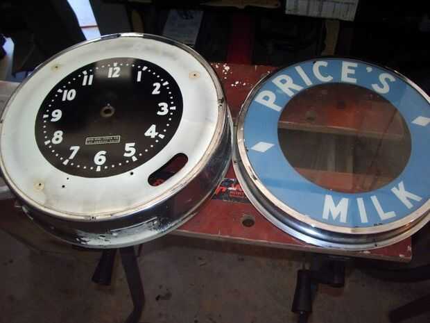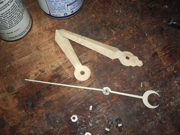Una vez que las mitades se separaron (Foto 1), apalancar con cuidado el reloj de las manos (Foto 2), y no recortado los restos de la luz de neón del tubo (que estaba quebrado, por supuesto).