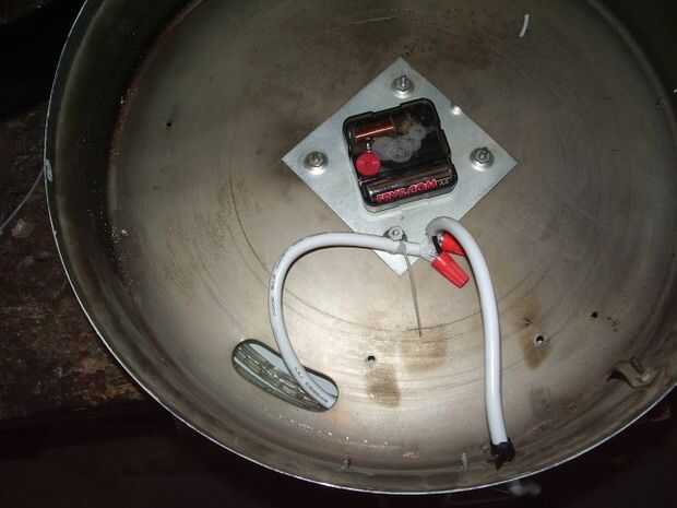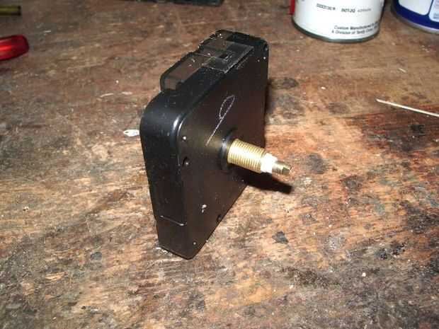 La foto 3 muestra el nuevo motor de reloj, instalado junto con la luz de la cuerda y el cable que sale de la parte posterior de la base del reloj.