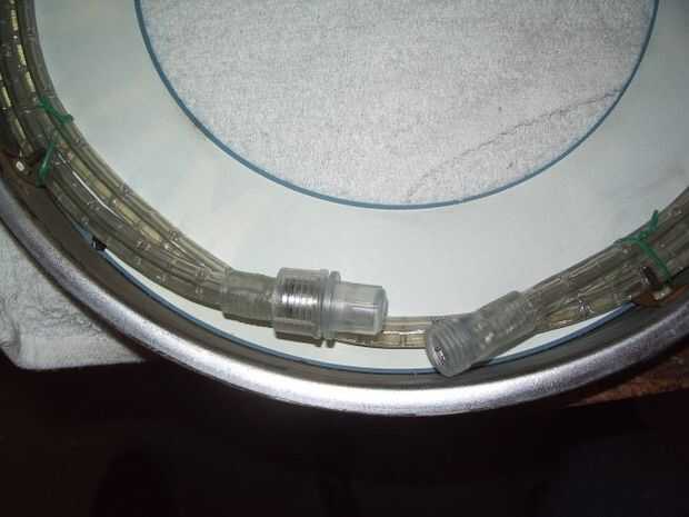Para reemplazar la luz circular, consideré primero reemplazar con una luz fluorescente circular. Después de todo, el tubo de neón era 12 pulgadas de diámetro y 12 pulgadas circulares fluorescentes están disponibles (junto con lastres), pero me preocupaba que la luz fluorescente sería mucho demasiado brillante para el reloj. Por lo tanto, tomé otro camino.