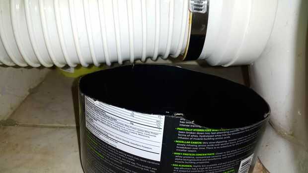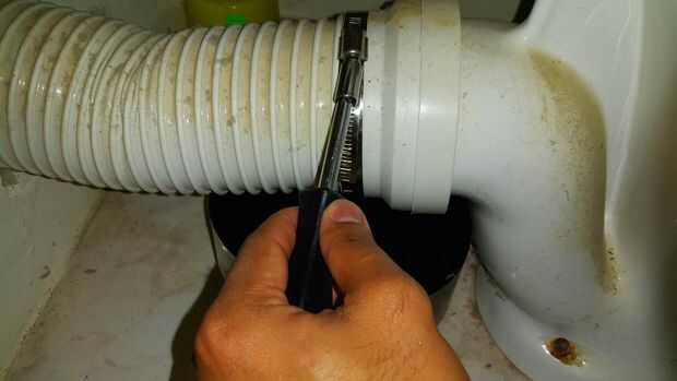 Sin apretar, hice la abrazadera apriete la manguera de descarga de la flexión y la fuga de detenido. Espero que esto pudiera sostener pero es un trabajo rápido de 5 minutos y me costó nada realmente.