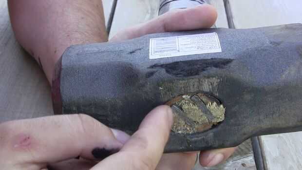 Fijación de una empuñadura de martillo o hacha trineo (2 / 3 paso)