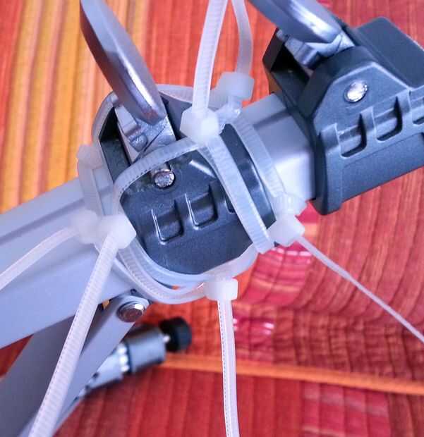 Finalmente puse algunos lazos zip más más en el lugar del roto, con el fin de resistir la presión cuando el agarre está trabajando.