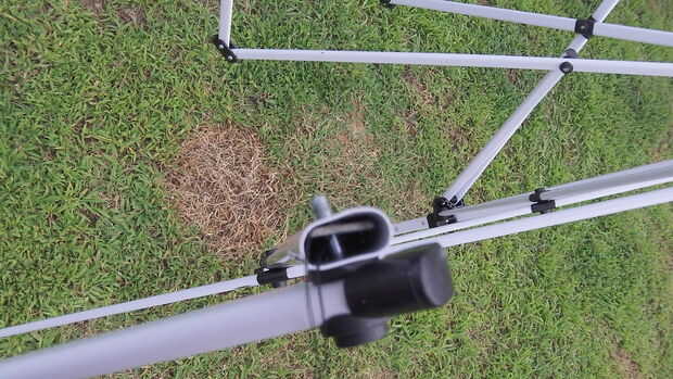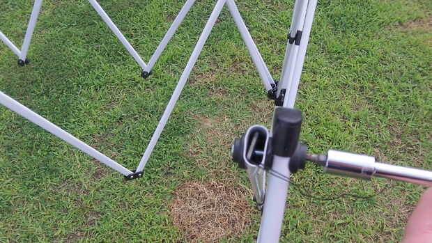 Salí de la cuerda en la estaca (porque yo puedo revisar esto un poco) y presioné el tapón en el extremo del poste y violia!