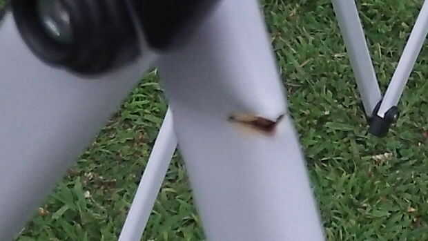 Como se puede ver desde aquí la última foto, hay un poco de óxido y metal ha separado un poco. I plan para (y esto actualizará más adelante cuando lo hago) arena apagado todo el crack, alguna cartilla de aerosol en él para evitar más moho y piensa porque tengo cierta separación metal, voy a perforar un pequeño agujero a través del poste y estaca debajo de la curva y poner otro tornillo pequeño a través de. Haciendo esto se asegurarán de que no habrá una falla catastrófica en el punto débil, y aunque por ejemplo hay (separación total) llevará a cabo los pernos a través de la participación.