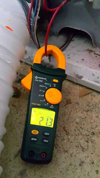 La corriente es cerca de la clasificación de 28amp de la unidad. Ahora para cerrar este secador.