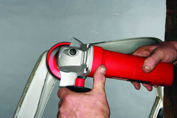 Con la puerta del coche, ahora puede comenzar a separar la piel de chapa. El perímetro de la piel se pliega sobre el marco de la puerta de la fábrica. Moler en el borde del perímetro de la puerta hasta separar la aleta doblada en la parte posterior de la puerta de la piel que forma la superficie de la puerta. Asegúrese de no moler lejos demasiado--cuando veas la brecha, seguir adelante. Una vez que te has ido alrededor de la puerta entera, debe ser capaz de despegar la chapa doblada desde el marco de la puerta. Utilice protección para ojos y guantes cuando--del metal están afiladas.