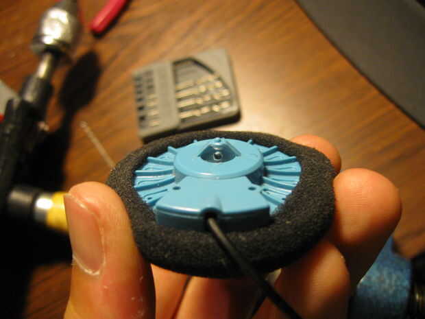 esto es cómo 'fija' un par de auriculares.Materiales y herramientas:1 par de auriculares rotos.2.Speakers, auriculares, brotes3 destornillador de cabeza plana archivo uñas4. tijeras5. (dependiendo del tamaño de los altavoces) algo suave para rellenar