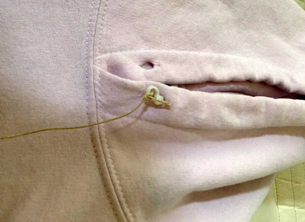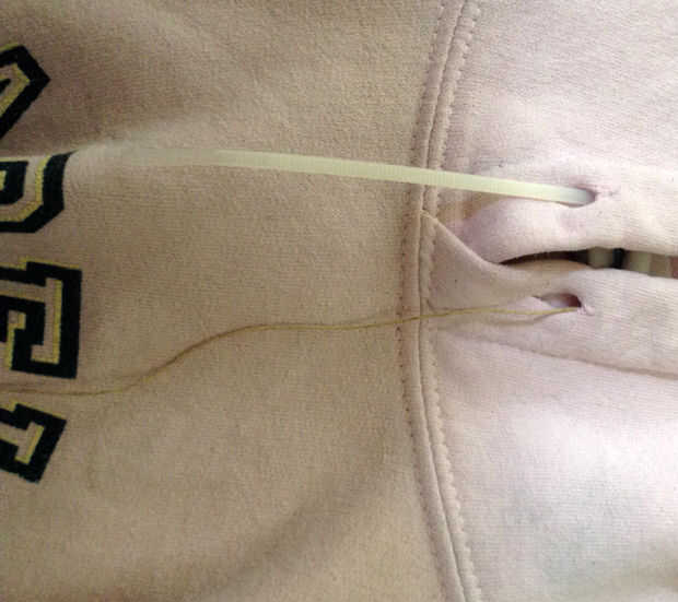 Si alguna vez has perdido el lazo en su favorito con capucha, pantalones cortos de gimnasio o pantalones de chándal, sabes que no es fácil de empujar esa cosa en allí. Aquí está una solución a volver a su sudadera con capucha con una paja y una grapa