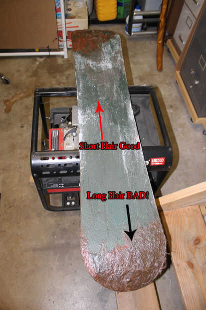 En primer lugar, comenzar con su pelo corto Bondo. Otra vez no puedo insisto ahora mucho que no recomiendo usar Bondo de cabello largo para este proyecto. Es así de grueso y muy duro. Si miras en mis fotos el relleno más rojizo en los extremos es de pelo largo, lo compré pensando que tendría más fuerza oropel (y probablemente lo hace) pero no lo hizo difundir así, fue más difícil mezclar, aglutinadas y era un dolor enorme en la arena. En lugar de otro conseguir pelo corto Bondo, como se puede ver en la primera foto, se separó de smoothy.