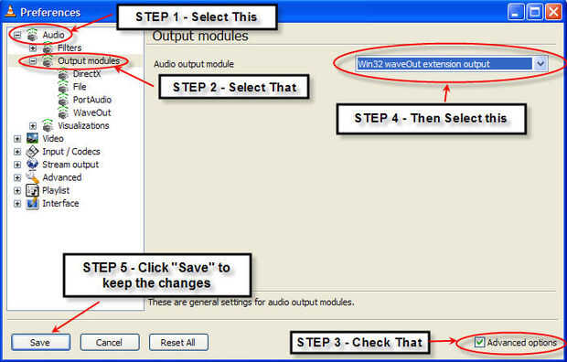 Fijar demora tartamudeo de audio y video en VLC Player (3 / 3 paso)