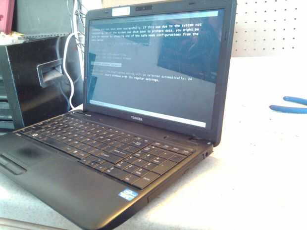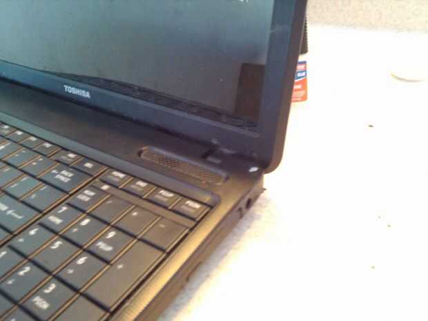 Otro de los tornillos en la parte inferior y los dos tornillos ahora cuidadosamente colocados por las rejillas del altavoz encima del teclado. Todo funciona muy bien, tapa abre y cierra sin problemas, y el cliente estaba contento.
