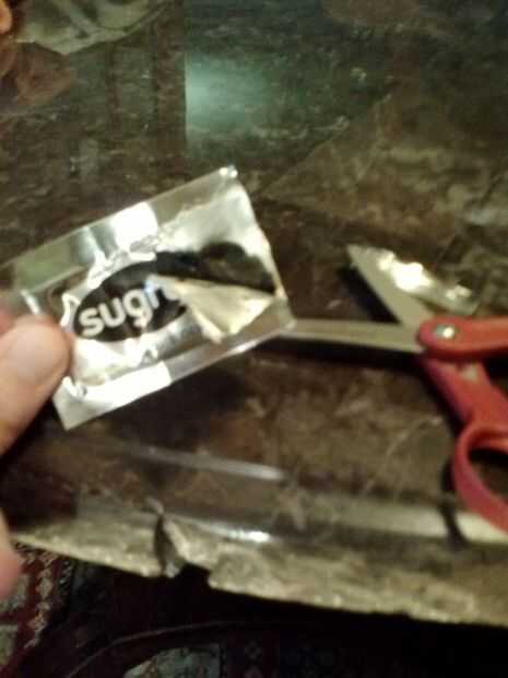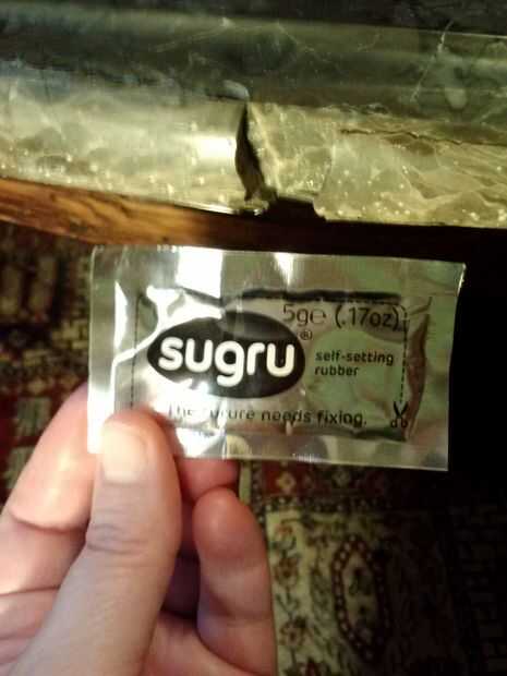 Fijar el borde de una mesa de mármol astillado con sugru (2 / 7 paso)