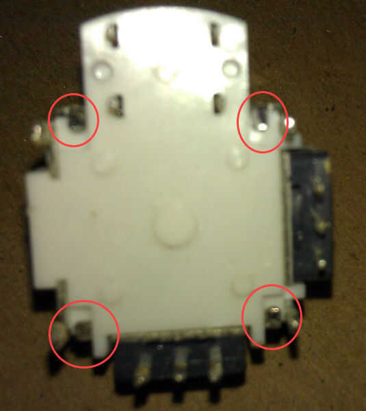 Voltee el joystick y buscar en la base de plástico inferior. Localice los 4 pines doblados sosteniendo la base en su lugar. Doble estos pernos hacia fuera recto para que la base se puede quitar.