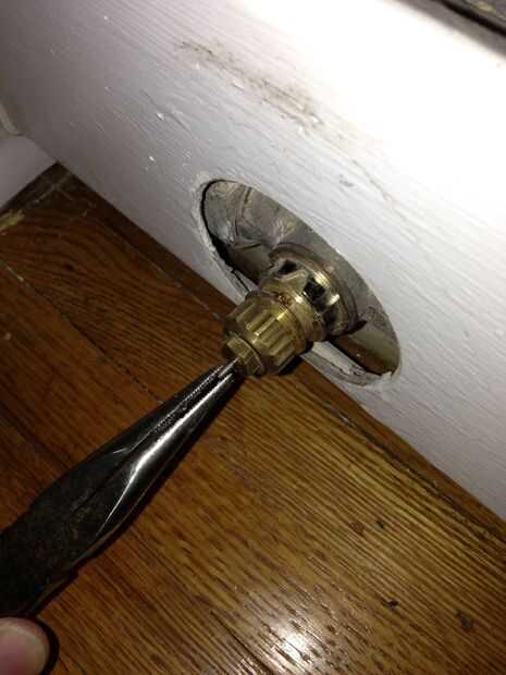 Usando unas pinzas de nariz de aguja, tire suavemente de la clavija que fue cubierta por la perilla de control. No necesitas sacar todo el camino, sólo lo suficiente como para aflojar. Usted escuchará agua flujo en las tuberías como tirar hacia fuera. Si accidentalmente le tira todo el camino fuera sólo puede empujarlo hacia en lugar.