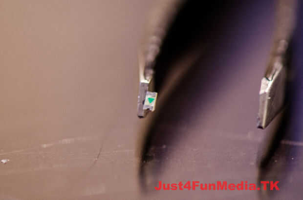 A continuación con un par de fórceps con cuidado coloque el LED en los contactos luego derrita la soldadura con una fina punta de soldadura de hierro.