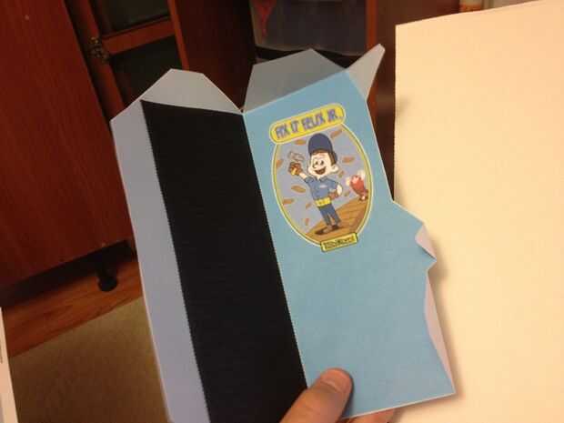 Cortar la primera parte de la plantilla de papel y doblar para arriba las pestañas antes de armar la cabina. Pegue del lado de la cabina para el cartón excepto las pestañas. Asegúrese de que dejar espacio para encajar las piezas.