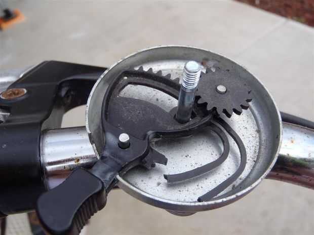 El actuador debe ser retirado a su posición inicial automáticamente. Esto se hace por un par de brazos plástico conectados al actuador y un anillo pequeño situado en el centro de la campana. Después de un montón de uso, estos brazos plástico eventualmente se separaron del actuador, que causa la acción de "resorte" que ya no funcionan.