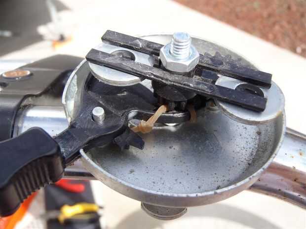 Con la goma de la herida, coloque el actuador a su clavija pivote con la ranura en el poste central. La banda de goma se tire el actuador contra el poste central. Prueba unas cuantas veces para ver si la banda tira el actuador de nuevo. Usted puede necesitar envolver alrededor de los postes otra vez.