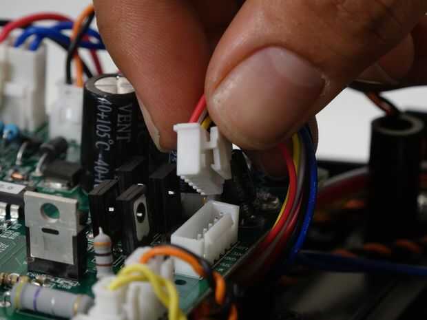 Levante la rueda correspondiente y podrás ver donde conecta a la placa base.