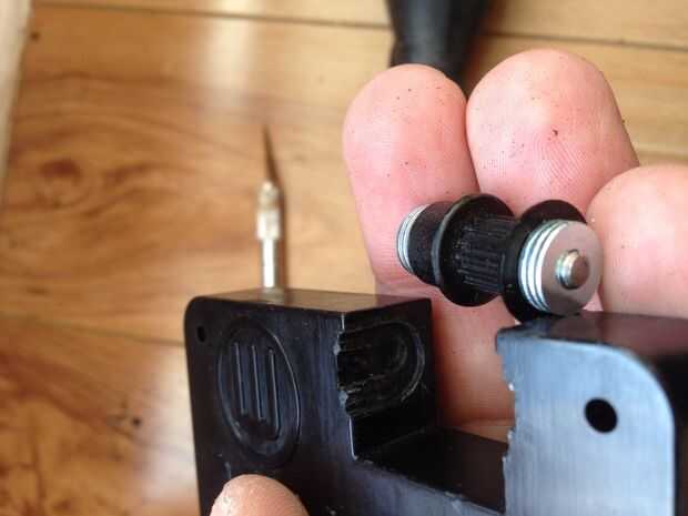 Agregar 3 arandelas a cada lado y un poco de grasa blanca entre el plástico y las arandelas de primera, deslice la parte más fuerte en su lugar.