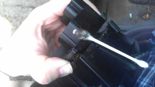 No pude conseguir una buena foto de las virutas de metal que encontré en los hisopos de algodón pero estaban dos los de buen tamaños. Éstos y la suciedad son probablemente los culpables de mi psicóticos clic en ruido.