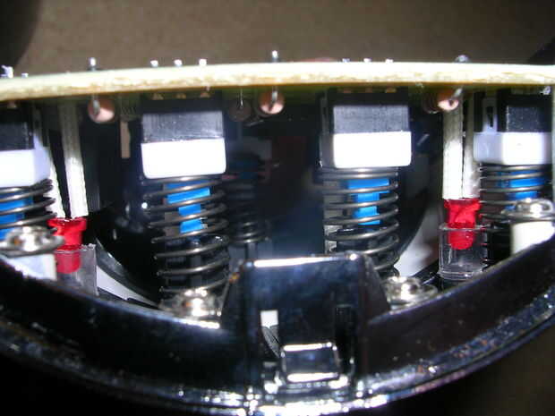 Miré a cada uno de los cuatro botones en la parte inferior, y había muy poco espacio entre el botón exterior y el interior entradas. Pude ver los botones de "grind" funciona correctamente como empujó cada uno de ellos. Sin embargo, de hecho estaba atascado el botón de apagado! El post fue de pegado en la posición hacia abajo.