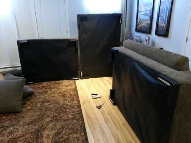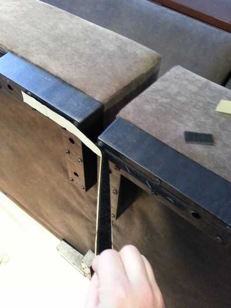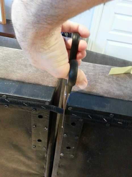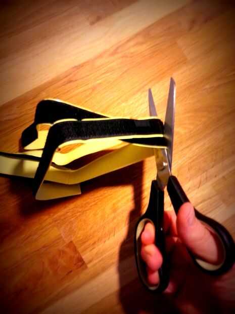 Ahora tapa la tercera pieza en la espalda y la vuelta el medio pedazo de modo que se respete su posición relativa. Repita los pasos descritos anteriormente. He elegido dejar la etiqueta en el lado del lazo del Velcro; los conejitos del polvo no necesitan cualquier ayuda para encontrar un hogar.