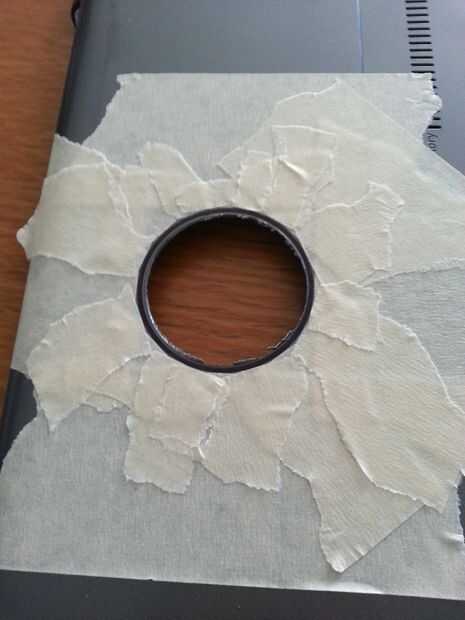 Una vez hecho esto, toma su papel de lija y limpiar un poco el agujero. Ahora retire la cinta. Si hay sharpie en él, límpielo con alcohol isopropílico o desinfectante de la mano.