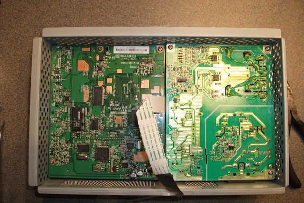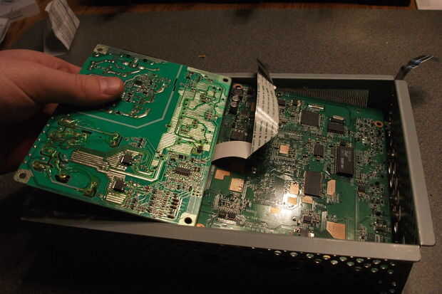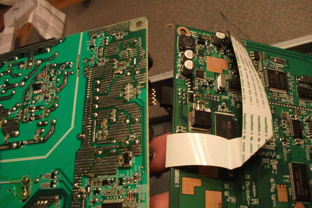 La fuente de alimentación está enchufada en el otro PCB de tal manera que debe quitar ambos tableros al mismo tiempo para evitar dañar la conexión.
