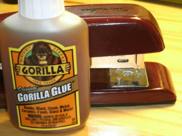En este Instructable, fijamos un par de sandalias "Entusiasta" con el pegamento del gorila y grapas de acero.