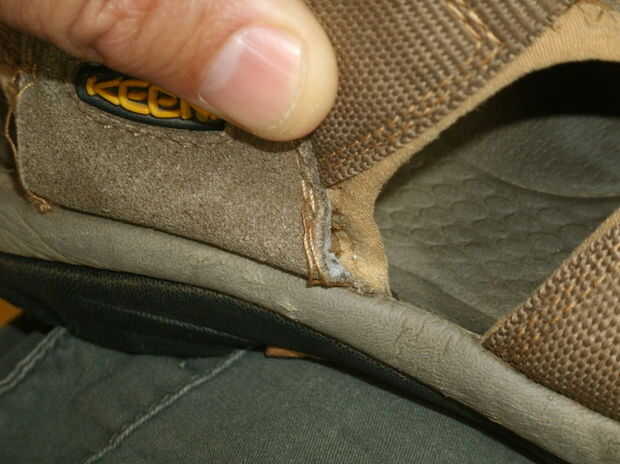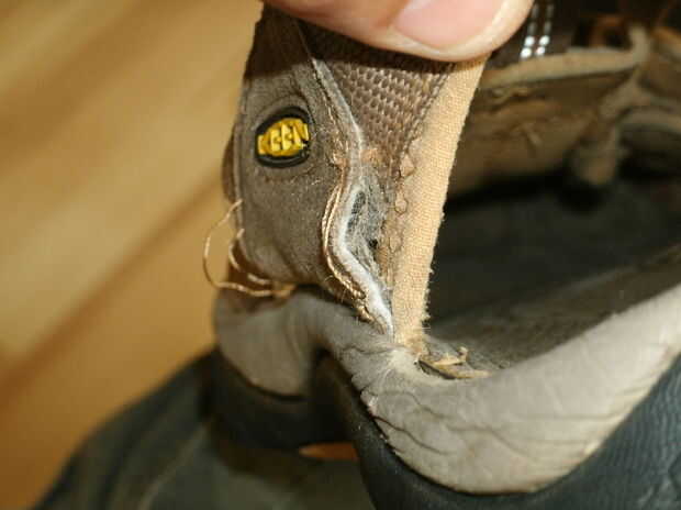Por cualquier motivo, diseño pobre o simple desgaste, mi aficionados han comenzado a desarmarse donde el tobillo se encuentra con la plantilla. La costura no está en seis de los ocho puntos.