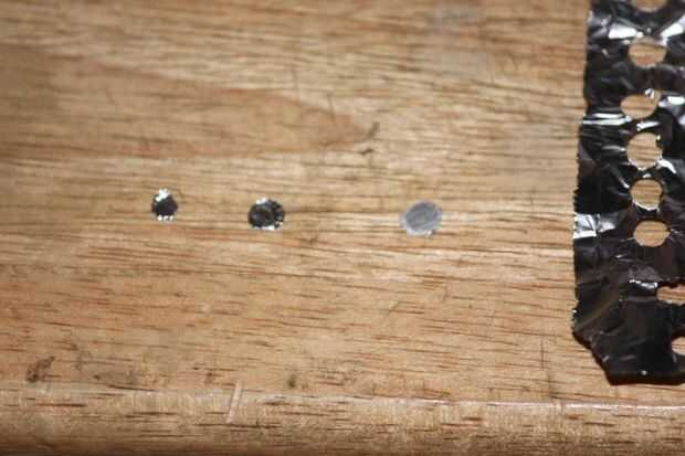 Golpear un montón de puntos de la lámina con el sacador de agujero,