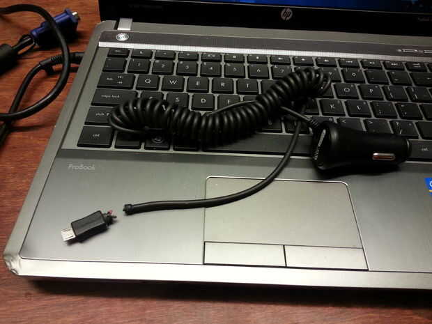Este es el cargador de coche para mi iPhone. El amarillo remolinos enciende para arriba cuando está trabajando. Eso ocurre sólo intermitentemente. Decidí ver qué podía hacer.Paso 1: Abra la caja corté alrededor de la parte superior del cargador con u