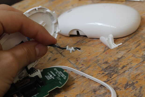 Hubiera podido usar su bisturí para pelar apagado el termo retráctil en el cable negro.