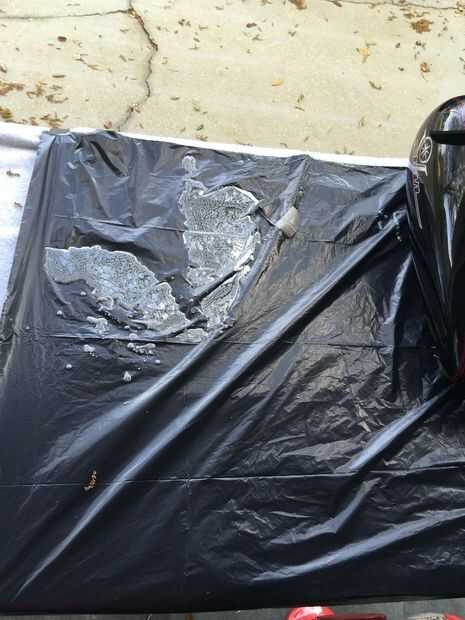 Esta parte no fue fácil... He quitado las cubiertas de cinta y utiliza el agujero del grifo como la fuga, punto de salida. Cortar una bolsa de basura de la yarda para hacer una lona disponible sobre una mesa plegable. Luego, con cuidado que el goteo de material hacia fuera en la bolsa de plástico. Pude apoyar mis codos sobre la mesa mientras me torcí el tanque a gotear el contenido. Quiere conseguir todos del exceso hacia fuera como un charco dentro pueden quebrarse o no cura correctamente e interactuar con el combustible--lo malo.