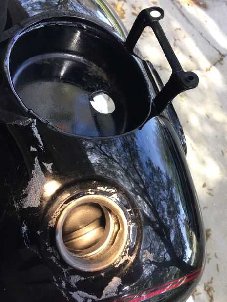 No pude ver dentro del tanque, pero aquí hay algunas fotos a través del orificio de la tapa de gas---mucho mejor.