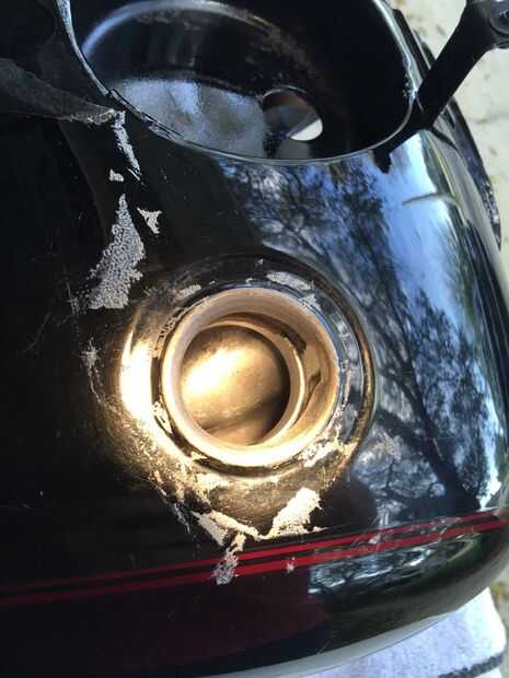 Tuve que utilizar algunos Goo para quitar pegamento de la cinta desde el exterior del tanque. --no estoy seguro es lo mejor para usar sobre una superficie pintada, pero el trabajo extra cera parecía evitar daños mientras que quité el gook de cinta.
