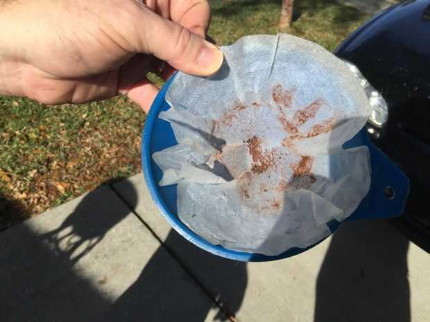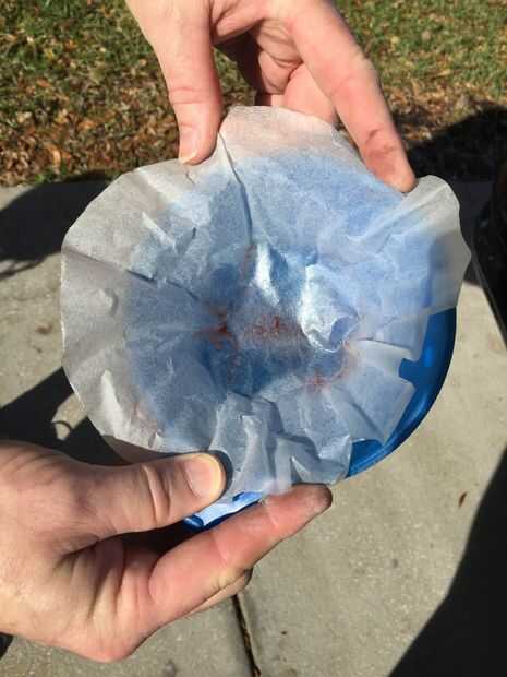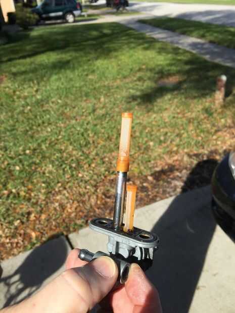 Tomé un par de fotos para mostrar. No parece Terrible, pero aún bastante malo para cualquier cosa podría conseguir el filtro de combustible y en los jets minúsculos de los carburadores. Experimentamos algunos corte motor salidas cuando el tanque de combustible bastante bajo en el combustible. Hubo algunas en las pantallas de la la llave de purga de la válvula como se puede ver.